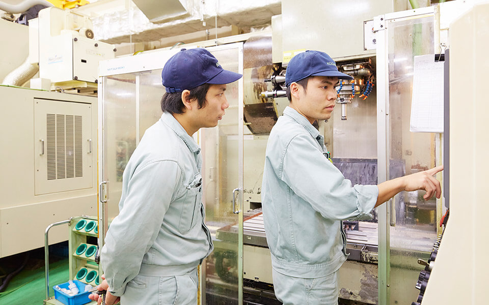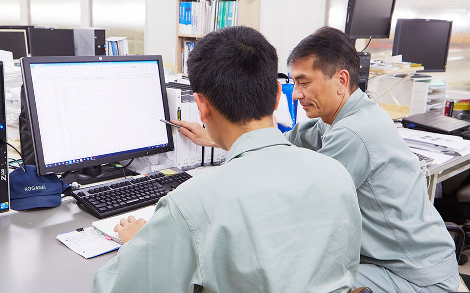 入社時から技術習得を目的としたOJT(職場内教育)を開始し、3年目ごろから徐々に指導する立場へと進んでまいります。