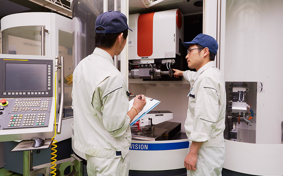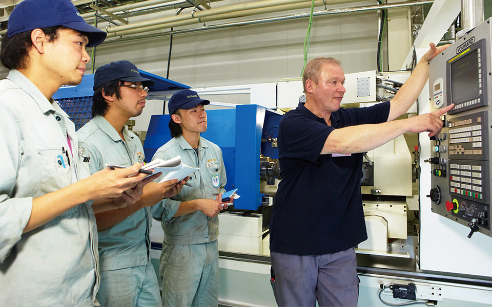 現場で実際に学ぶことが教育の基本です。日常の製造工程における知識や技術の取得はもちろん、当社のパートナーである海外精密工作機械メーカーの技術者との議論や共同作業などにより、日本にいながらにして世界の最先端の技術・情報を習得することができます。 また、国内パートナー会社による研修や講習会、当社が納品する製品が現場でどのように使われているのかを、実際にレースを観戦して確かめる機会など、OJT以外の場への積極的な参加も推奨しています。